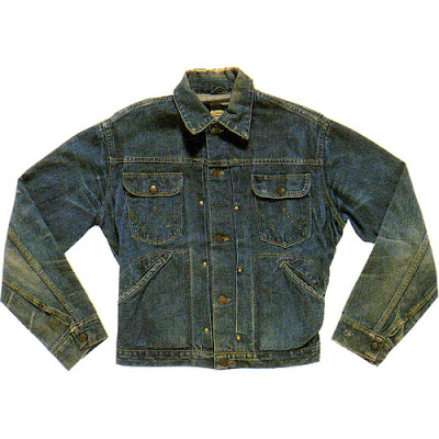 In 1948, Wrangler introduced its first denim jacket, the Model 11MJ. It was produced with a button front until 1950 when the buttons were replaced by a zip front. The jacket featured vents on the back of the shoulder seams that were held in place by elastic strips sewn on the inside of the jackets. The design also included backstraps with buckles on the outside of the jackets. It was tailored to give a tighter fit and still allow free movement. The early design also featured the famous pleats alongside the buttons in the front. The Wrangler labels sewn into these early products contained the Blue Bell Logo in addition to the Wrangler Name.